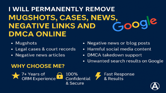 I will remove mugshots copyright product and social media co...